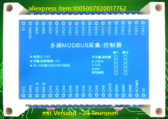 Man(n) braucht ein Recom Spannungsregler 3,3V 0,5A, ein RS233 TTL auf Modbus Platinchen, ein Elko 100µF 16, etwas Drahtverhau und Lust zum basteln.