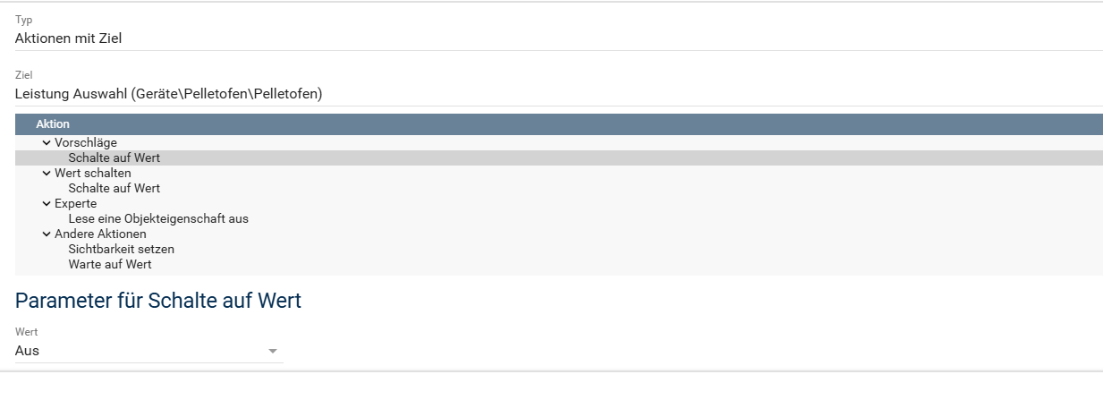 Wenn die Variable keine Aktion hinterlegt hat, dann sehe ich “Setzen auf Wert einer anderen Variable”. Ich brauche aber das “Schalten…”