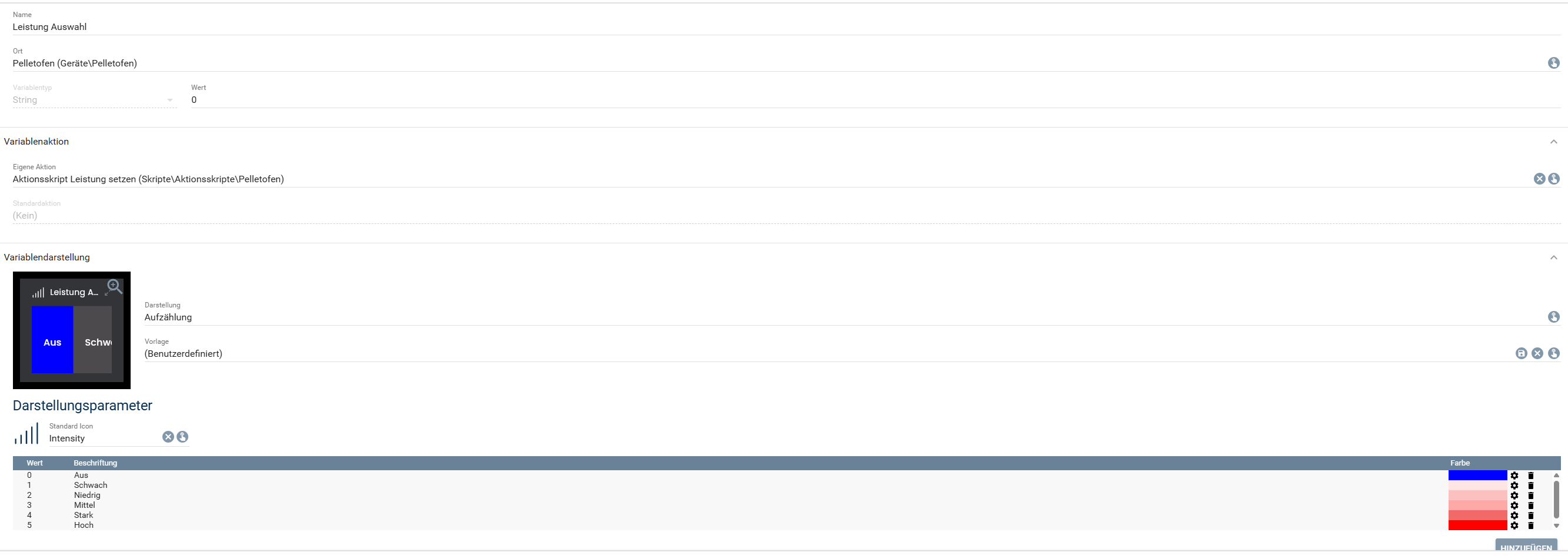 Diese Variable hat auch eine Aktion hinterlegt.