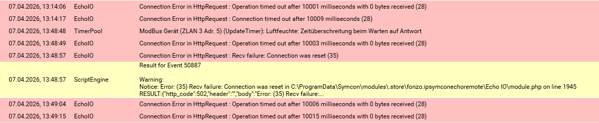 “26.03.2026, 16:51:14 | EchoIO | Connection Error in HttpRequest : Recv failure: Connection was reset (35)”