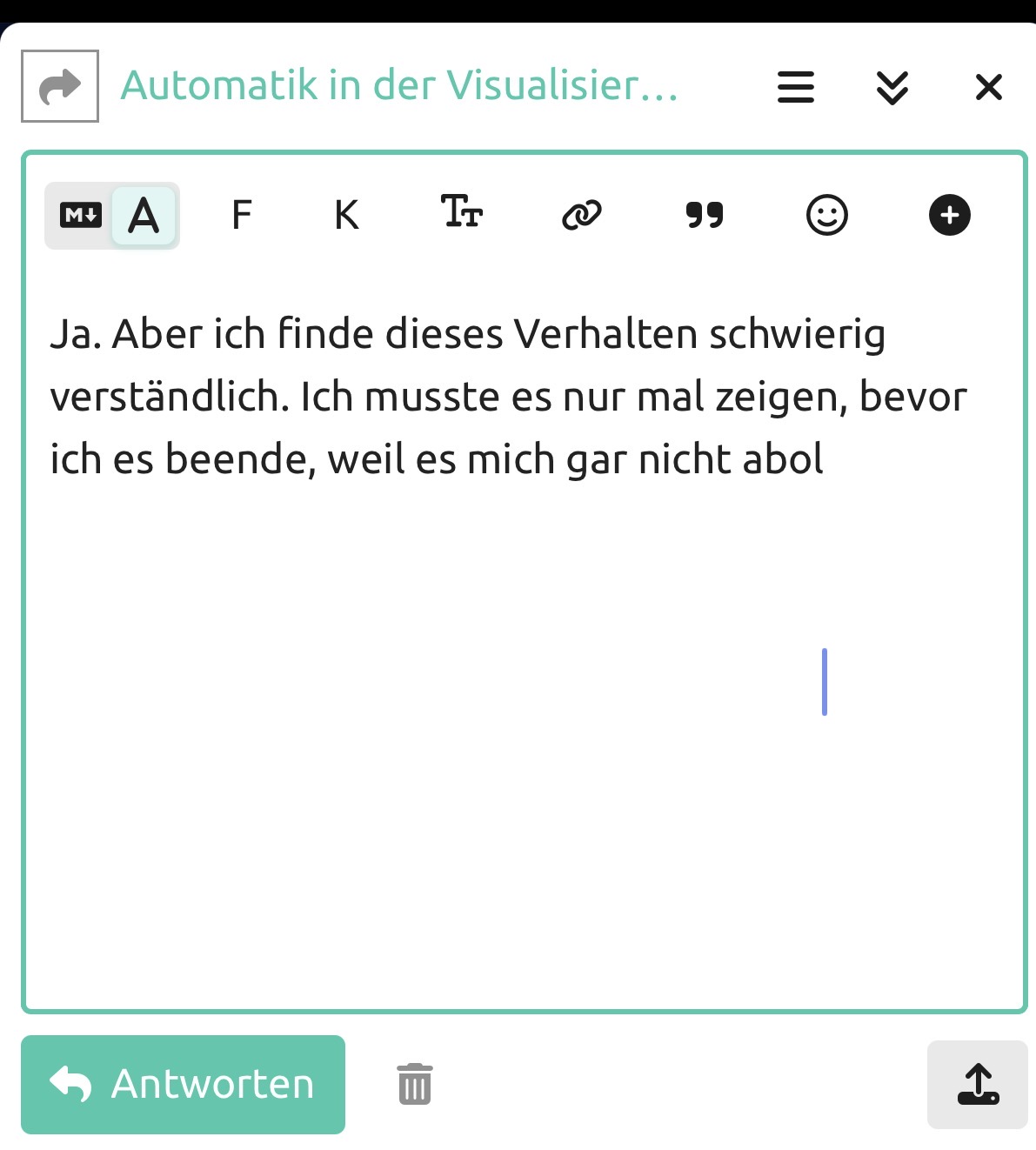 Ja. Aber ich finde dieses Verhalten schwierig verständlich. Ich musste es nur mal zeigen, bevor ich es beende, weil es mich gar nicht abolt.