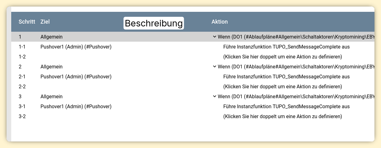 Im Ablaufplan fehlt für die Aktionen das Beschreibungsfeld. Ich verwende umfangreich Wenn-Dann-Mehrfach und es ist jedesmal erforderlich, diese umfangreichen Logiken gedanklich neu zu erfassen …