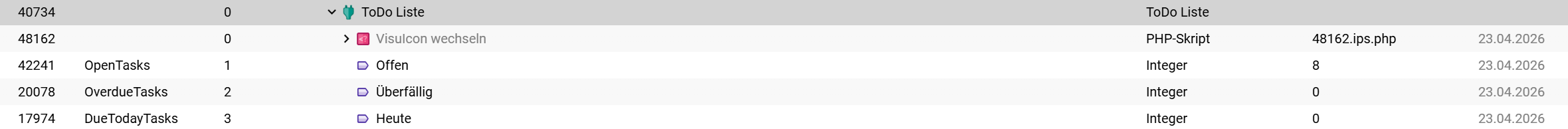Die Variablen werden nur bei Änderungen in der Visu aktualisiert, die Variablen müssten sich doch auch selbständig wenn Heute oder Überfällig in der Visu erscheint aktualisieren?