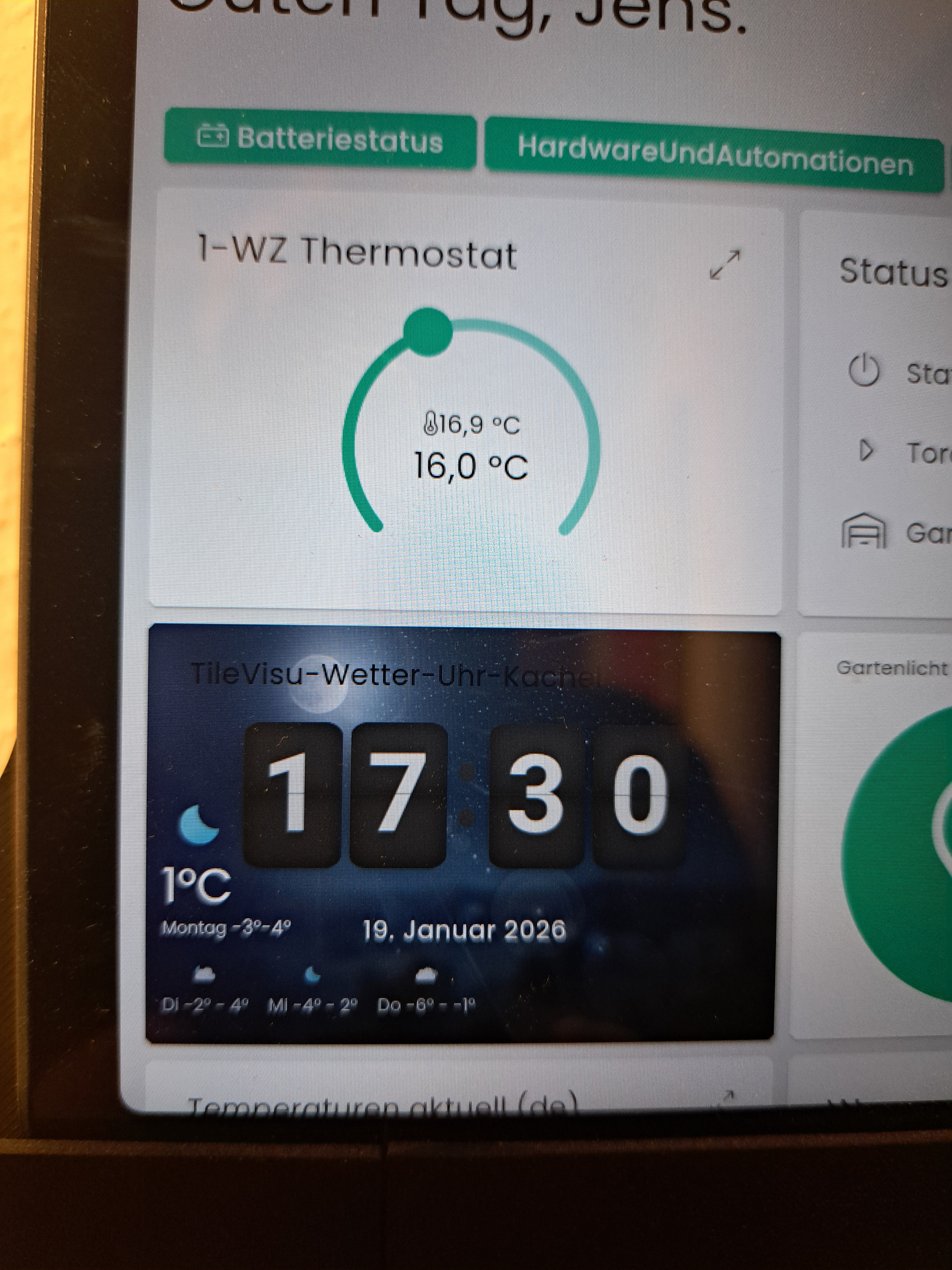 Dann hatte ich die Wetterkachel entdeckt und ein WebCam Bild hinterlegt. Und dann mal versuchsweise diese Kamerabilder als Hintergrund genommen.