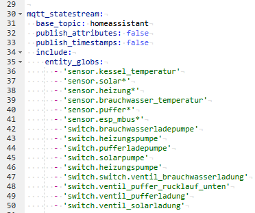 Hier ein Syntaxbeispiel welches nur ausgewählte Entitäten an den MQTT schickt: