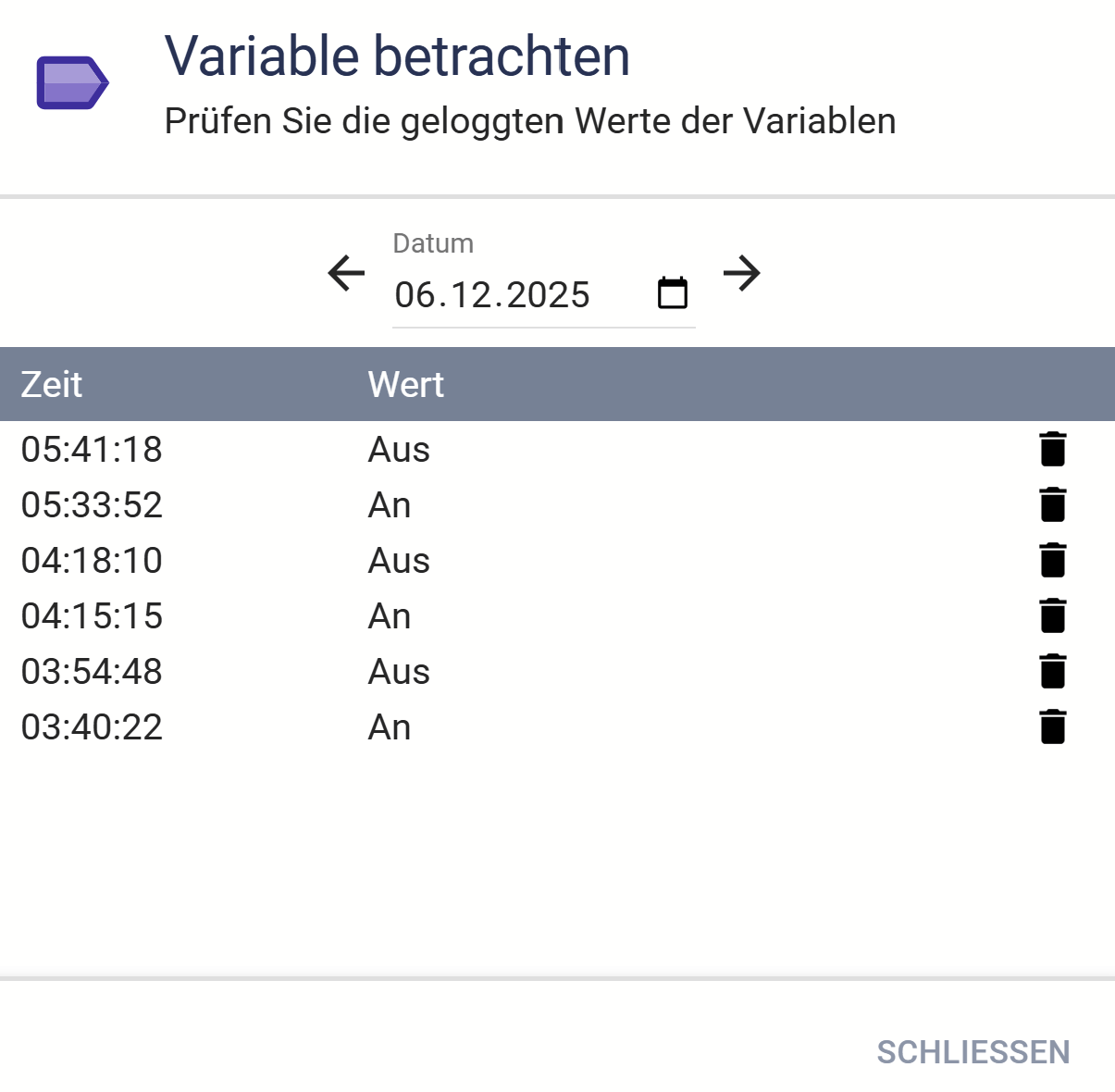 Ich frage auf eine neue Boolean erster Logg um 12:03 (auch von heute) ab, die als Zähler geloggt wird.