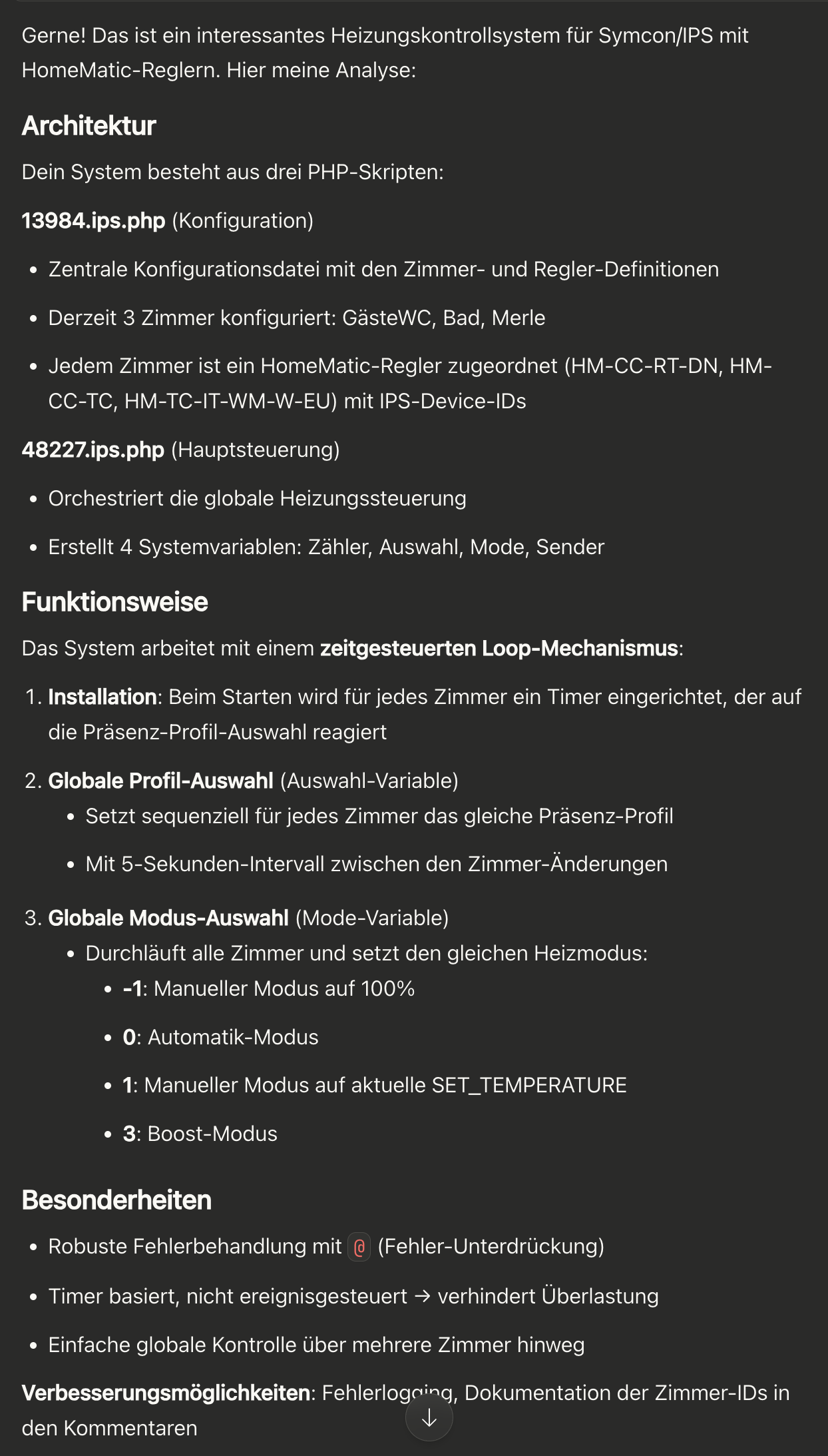 Ich hatte vorhin Claude einfach mal alle Heizungsskripte von Swifty (wer sich erinnert) hochgeladen. Bitte mal analysieren.
