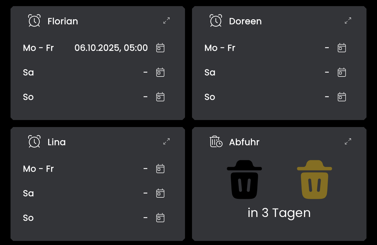 Das ist aber für die Bedienung am Handy oder Touchscreen sehr unpraktisch. Das Uhrensymbol könnte ja auch direkt neben der Uhrzeit stehen, um die Zeiten zu ändern. Ich werde das mal in die Wünsche-Liste stellen. So muss man oben rechts den Doppelpfeil erwischen, um die Kacheldetails zu öffnen, dann auf die Uhr um die Eingabekachel zu öffnen und danach muss alles wieder geschlossen werden.