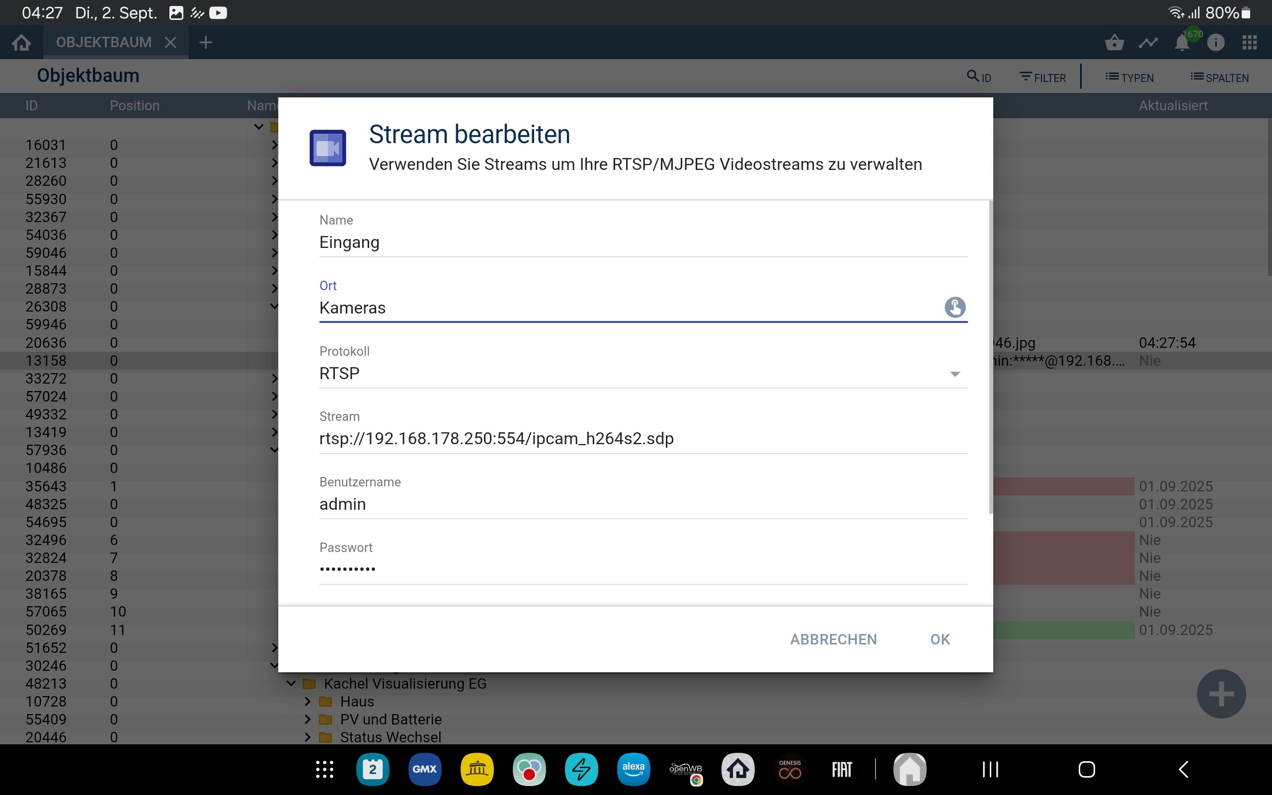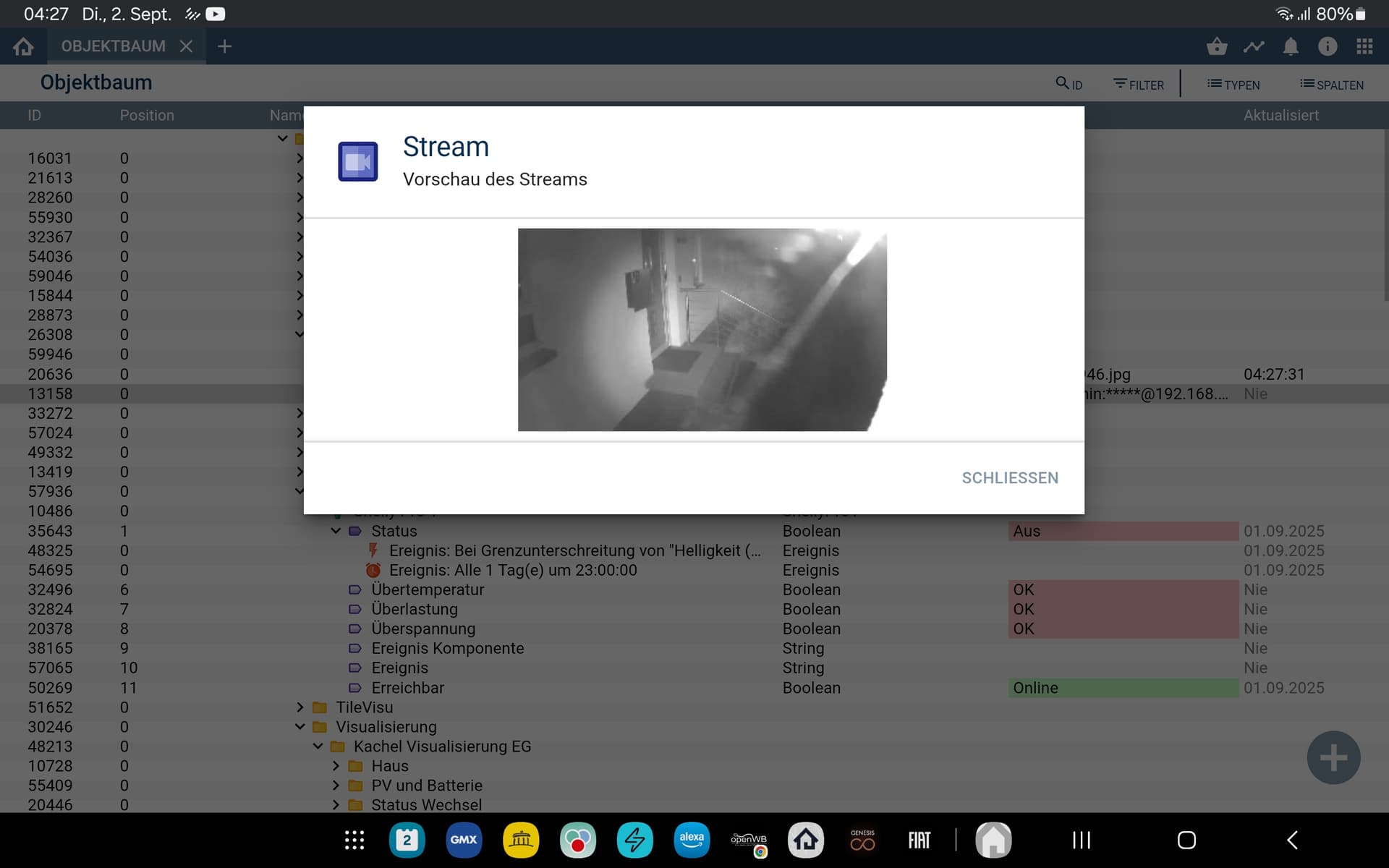 Auch wenn ich versuche, die Kamera als Stream einzubinden, wird diese in der Visualisierung nicht angezeigt, in der Vorschau allerdings schon.