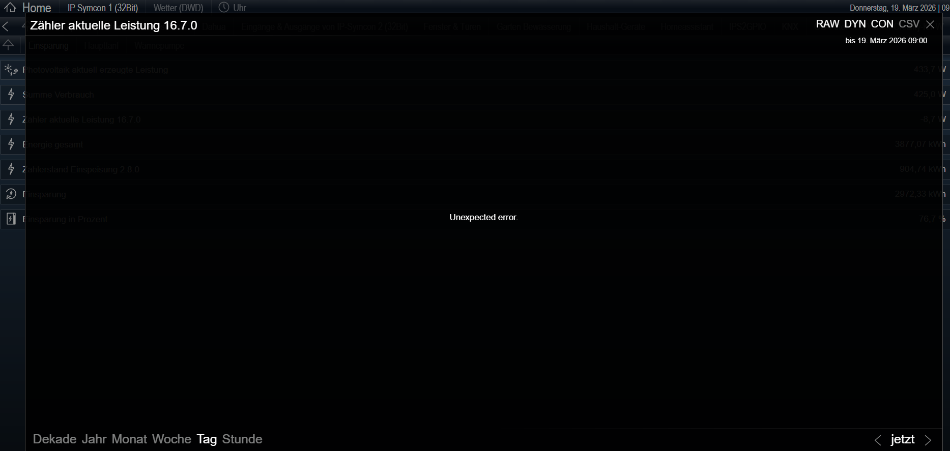 Ich habe hier lokal bei der Darstellungen der Diagramme im RAW-Modus in der alten Visu extrem lange Zeiten und sogar bis zum Timeout remote auf dem Smartphone. z.B. die Stromzählerwerte 16.7.0