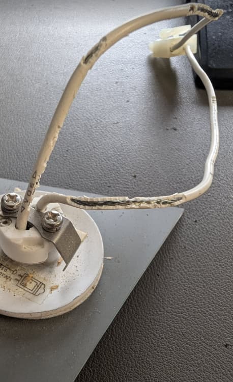 Und nicht nur an einem Spot, alle (Gummi) isolierten Kabel von Spots zum Verteiler waren von irgendeinem Mistvieh angefressen und verursachten willkürlich Kurzschlüsse. Was für ein Glück das das Netzgerät rechtzeitig abschaltete und kein Brand in der Zwischendecke entstand.