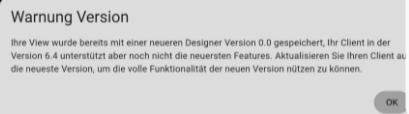 Du hast die 6.5 Beta Version des Designern in Verwendung, der Client hat aber noch eine alte Version und kann deshalb die neuesten Funktionen noch nicht unterstützen.