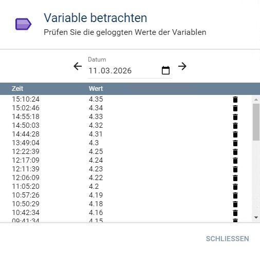 Jetzt habe ich eine neue Variable angelegt und geloggt. Werte werden auch ins Archiv geschrieben.