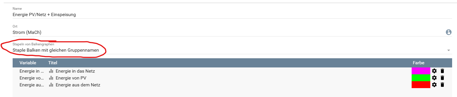 Stacked Bars sind die am meisten vermisste Funktion bei den Graphen. Gerade bei dem künftig sehr populären Thema Energiemanagement wird diese Visualisierungsform häufig benötigt.