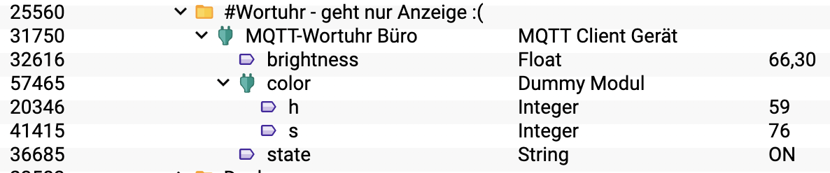 Die Variablen die angelegt werden, aktualisieren sich automatisch jede Minute. Die Einstellung eines der Effekte über die Webseite der Wortuhr erzeugen keine weiteren Variablen.
