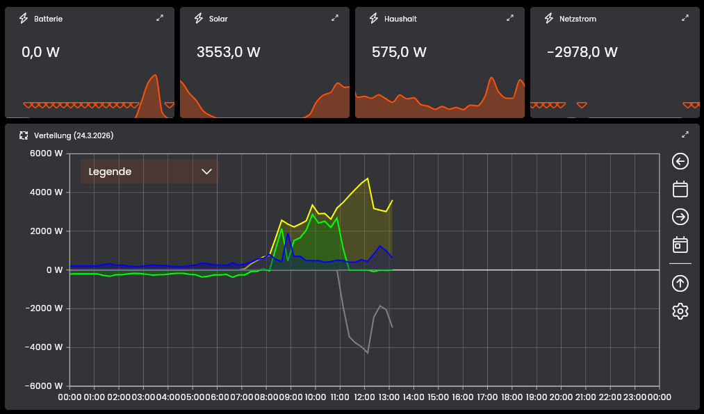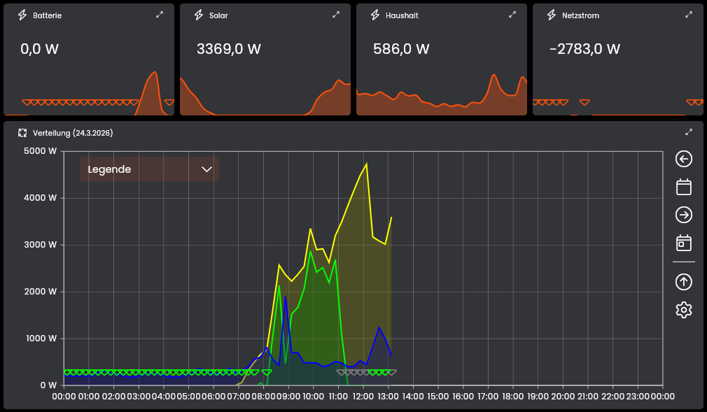 Min = Max = Wert ist drin ist tatsächlich seit einigen Jahren schon der Standard. Da sehe ich also kein Problempotential beim Upgrade zur 9.0. Würden wir das streichen, würde das auch viele Balkengraphen kaputt machen. Stell dir vor, dein Hausverbrauch schwankt zwischen 10 und 10,1 kWh am Tag. Wenn du dann den Graphen mit Nulllinie hast, dann sind alle Balken nahezu gleich groß (aktueller Stand). Wenn ich die Nulllinie rausnehmen würde hätte ich visuell intensive Schwankungen mit unten 10 kWh und oben 10,1 kWh. Das ist natürlich auch korrekt, ist meiner Meinung nach aber definitiv eher verwirrend.