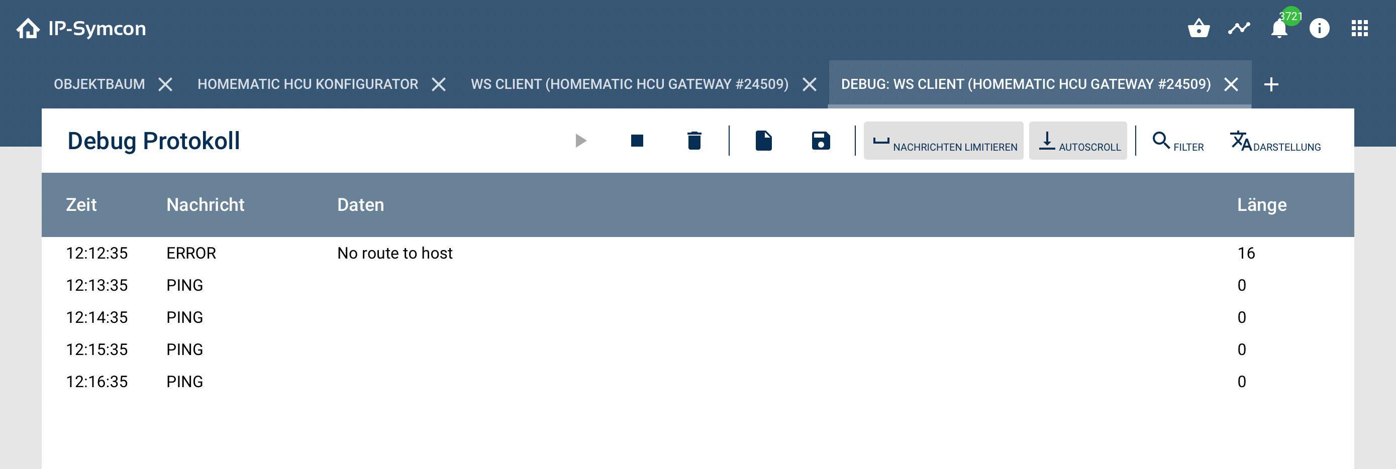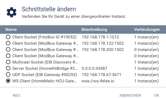 Kannst du im Gateway über Schnittstelle ändern schauen ob du auch an dem richtigen Socket hängst? Vielleicht hat sich beim neu erstellen da etwa verheddert.