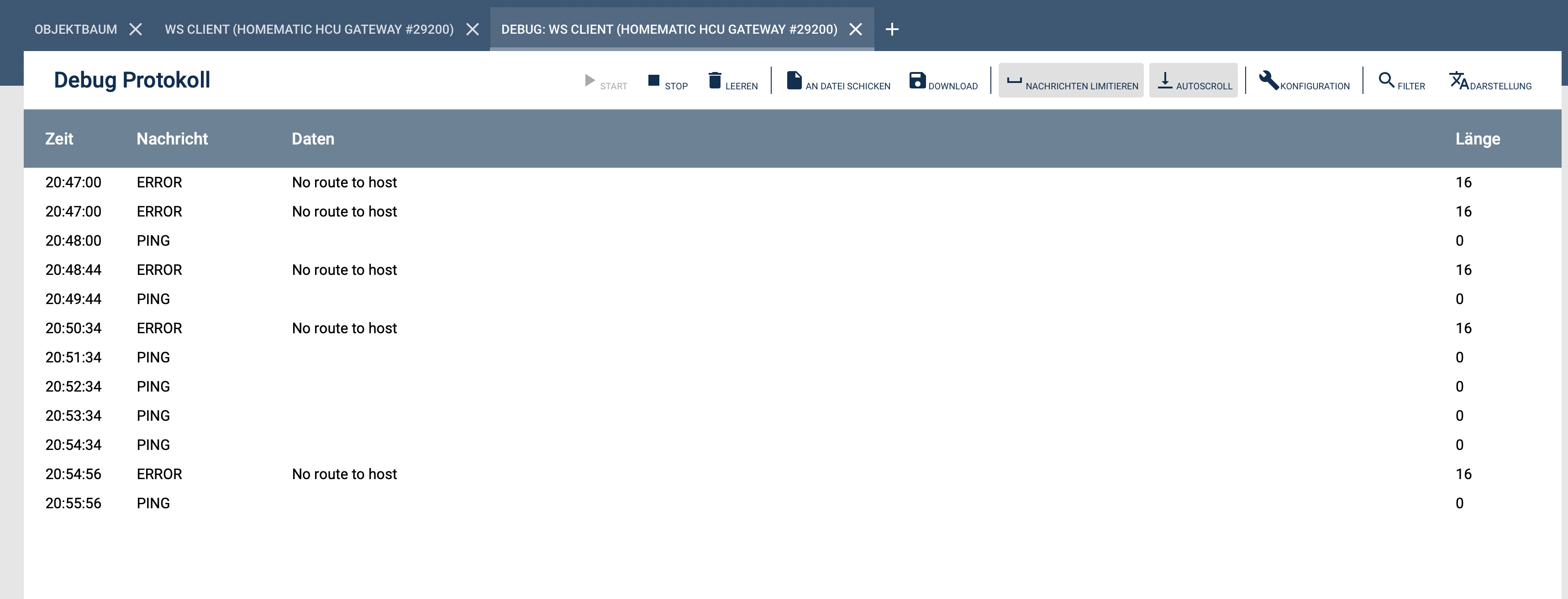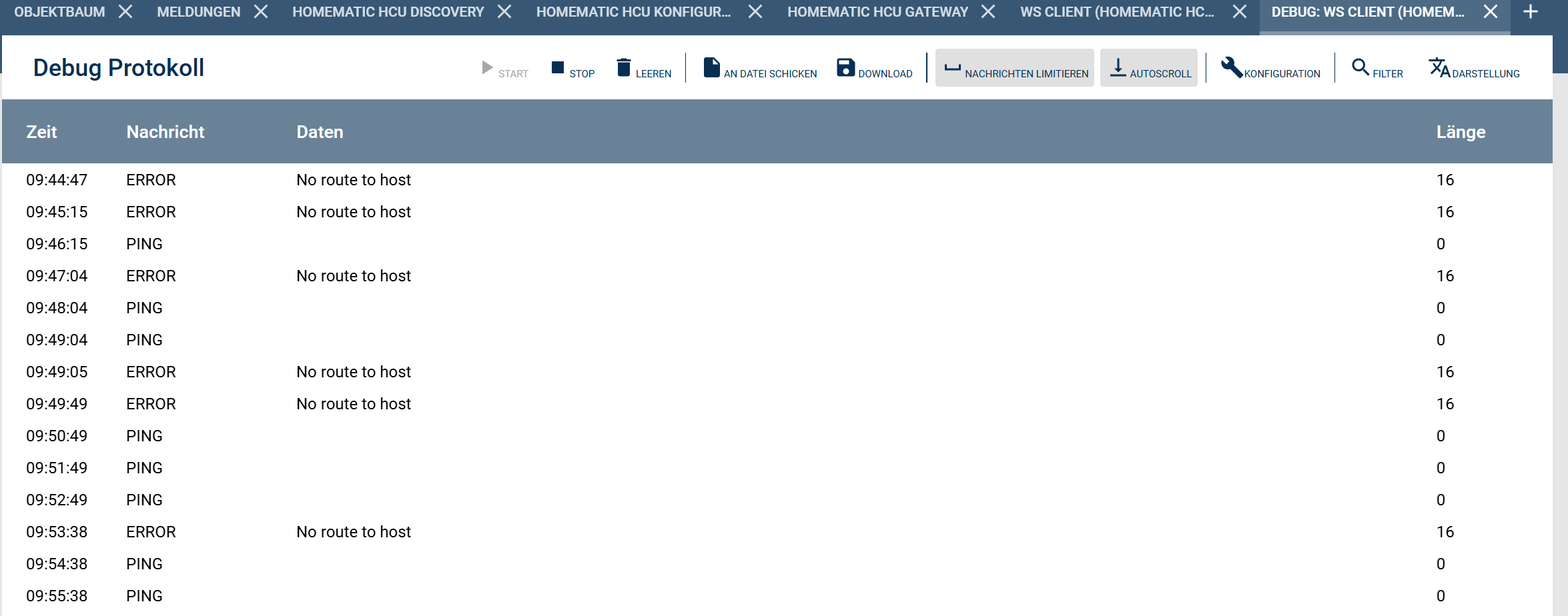 Bekomme minütlich folgende Fehlermeldung vom HCU Gateway: