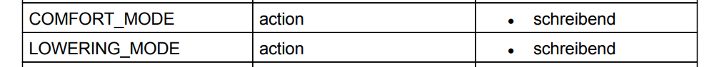 Bei Homematic muss man selber in den Datenpunklisten nachschauen und dann findet man die Datenpunkte LOWERING_MODE und COMFORT_MODE.
