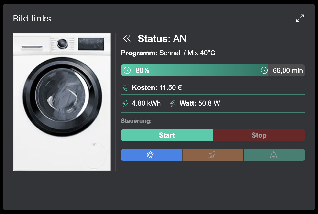 Zweite Frage, da es immer mehr Geräte bei mir werden habe ich sie in einen Inhaltswechsler gepackt, aufgrund unterschiedlichen Größen (Wallbox/Waschmaschine) sieht das innerhalb der Kachel so semi gut aus: