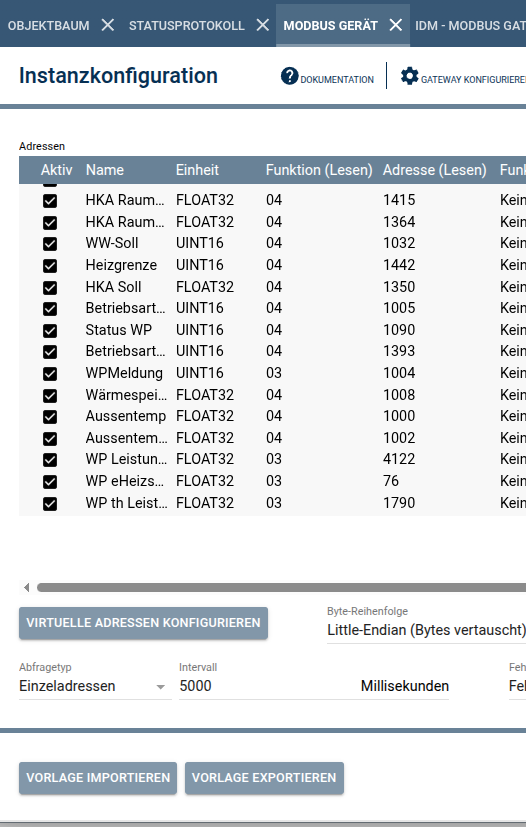 mit Modbus Gerät und einer Vorlage gings bei mir prima.