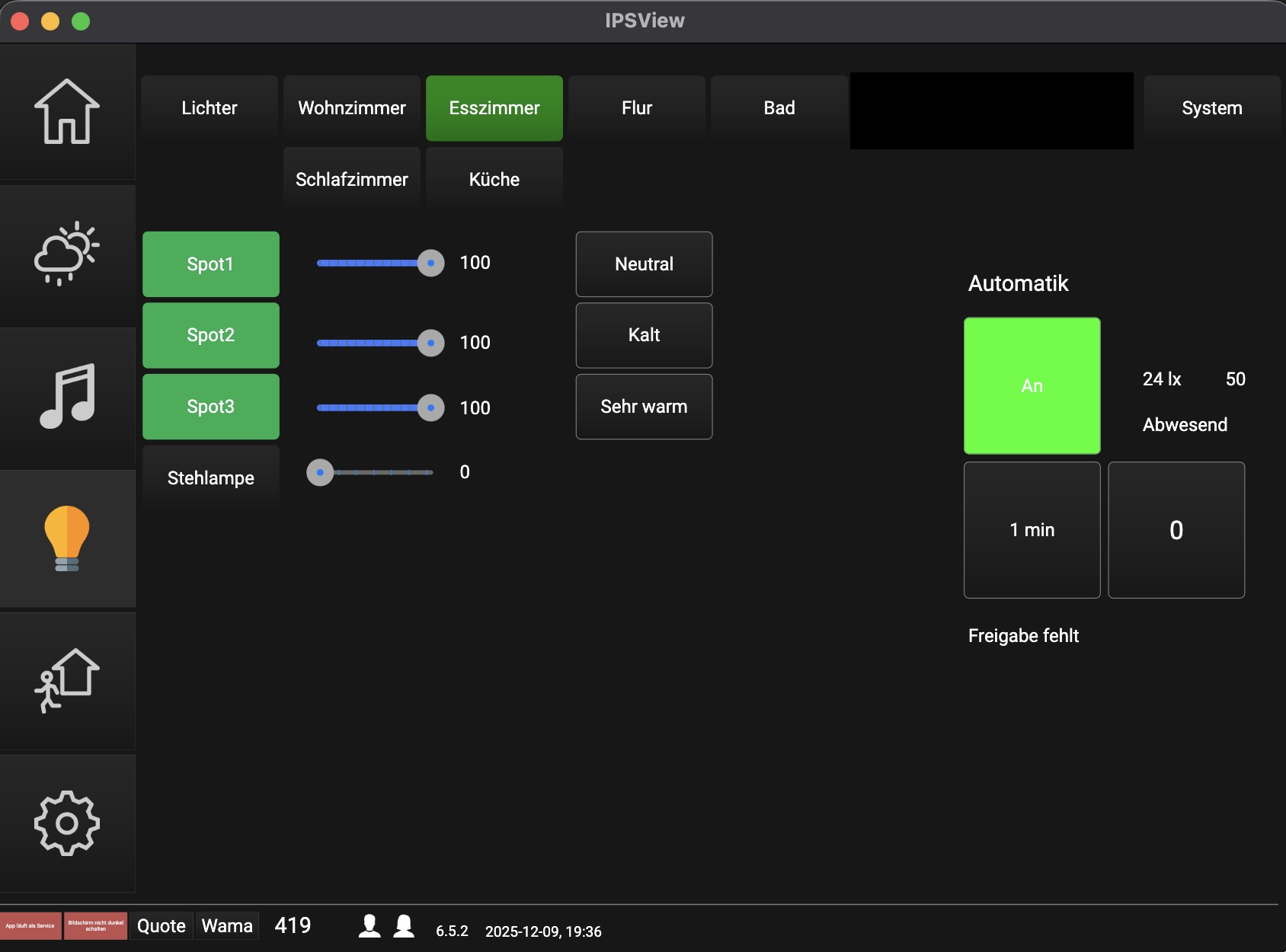 klick auf die linke Navigation geht problemlos, ich kann die einzelnen Bereich sehen, klicke ich aber auf die Navigation dann oben, sehe ich kurz wie der Inhalt des Containers sich ändert, um dann im nächsten Moment wieder auf der Startseite der View zu landen. (Sprich das Bild so wie es oben zu sehen ist, sehe ich auf dem iOs Client nur ganz kurz, habe also keine Möglichkeit die Lichter zu bedienen)