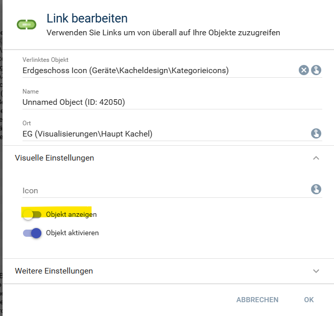 Dort wählst du bei Hintergrund dein Objekt/Link