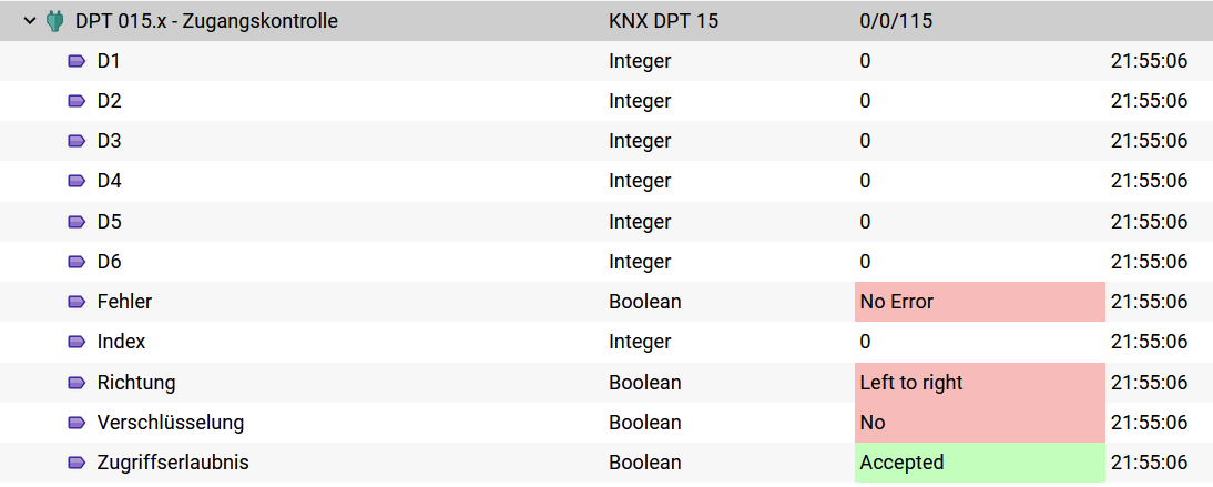 Die andere Richtung von Symcon → KNX scheint dagegen korrekt zu funktionieren. DPT 15 hat übrigens eine Länge von 4 Byte.