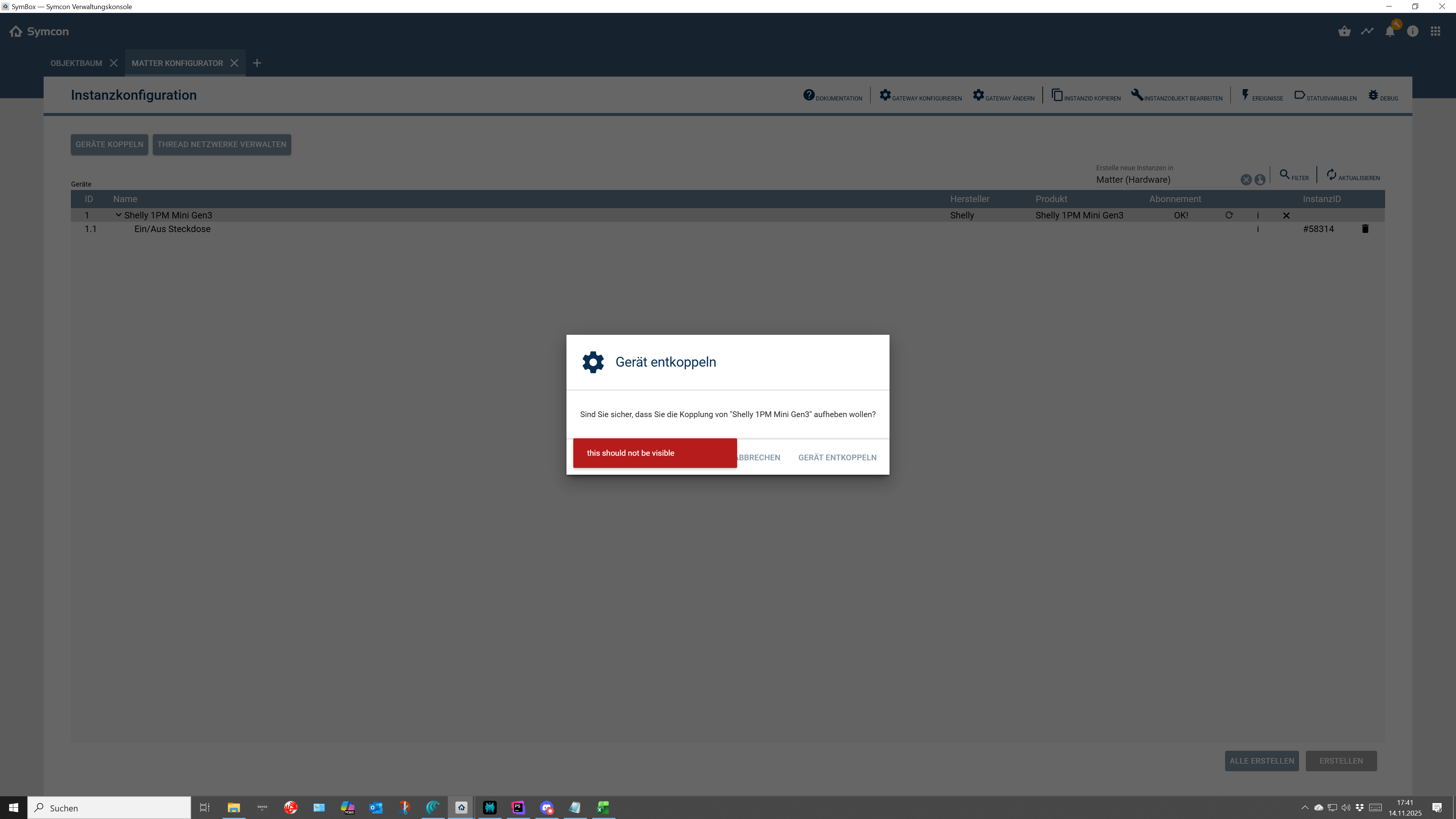 Btw. Aktor komplett gelöscht, neu per Matter verbunden - wieder 2 Einträge.