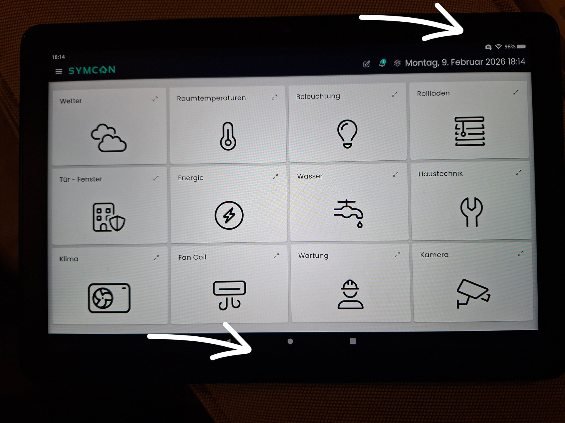Nun startet Fully meine Symcom Kachel App, funktioniert aktuell.