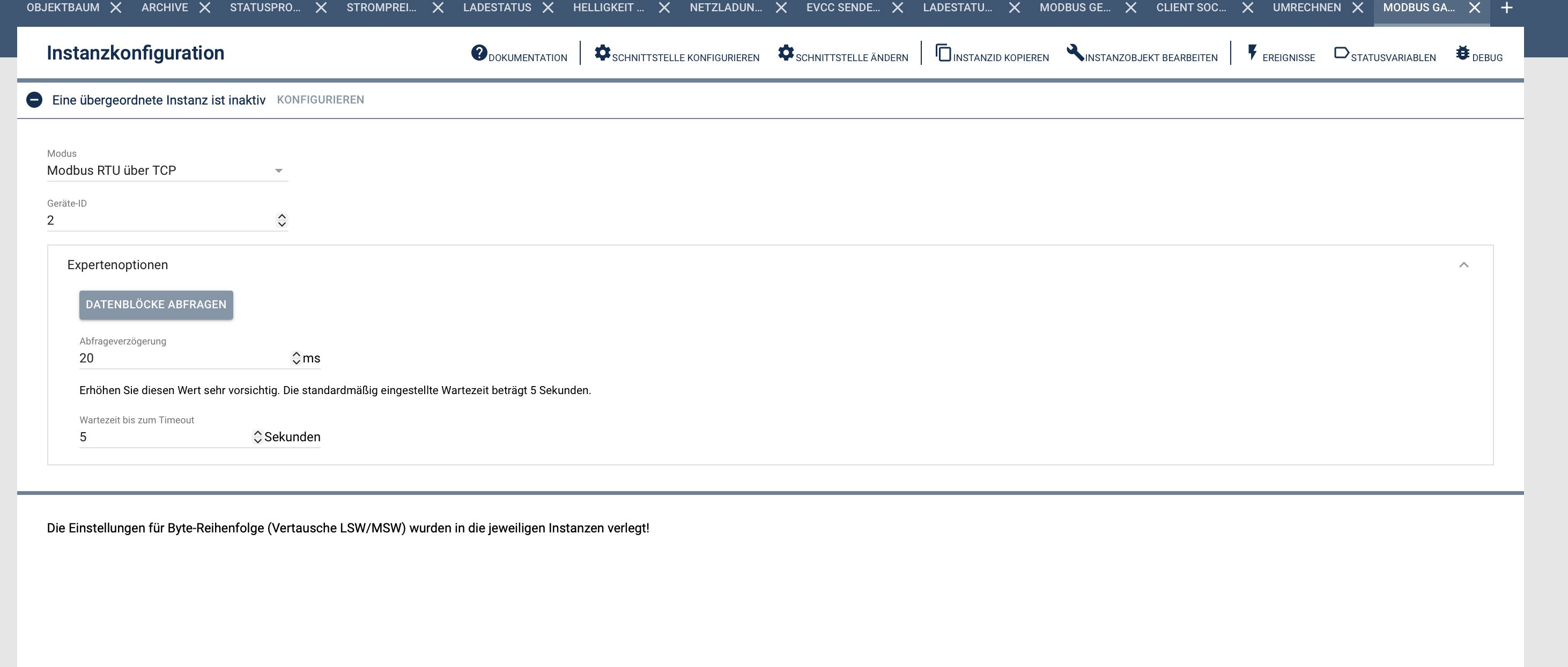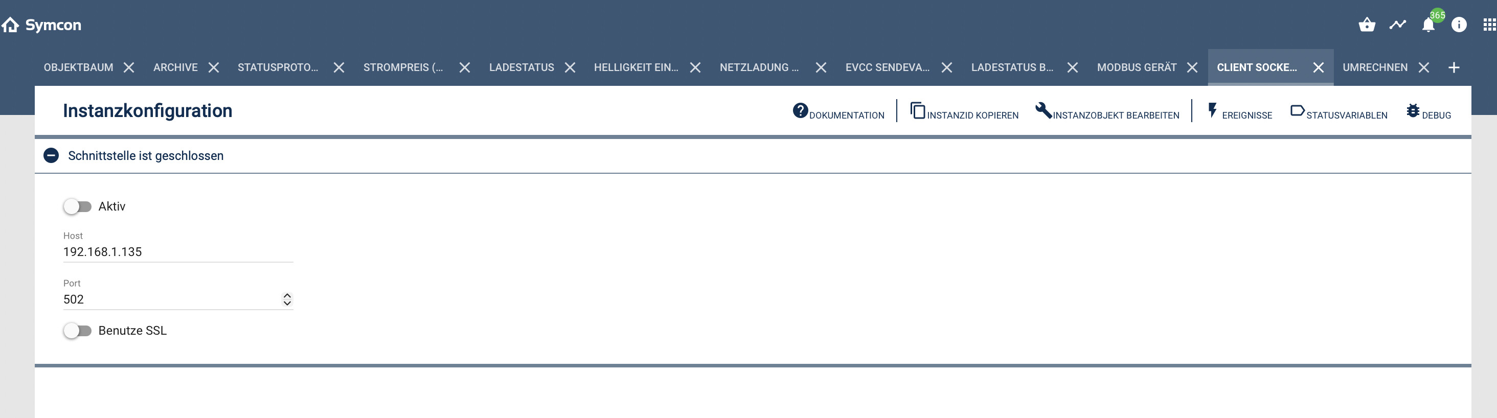 Nun möchte ich aber einige Parameter auch in Symcon mitlesen, da nicht alle Daten des Pulsares Controller dargestellt werden. Ich kann zwar auch einige Daten mit Symcon aus evcc auslesen, aber die sind nur rudimentär und haben eine hohe Latenz.