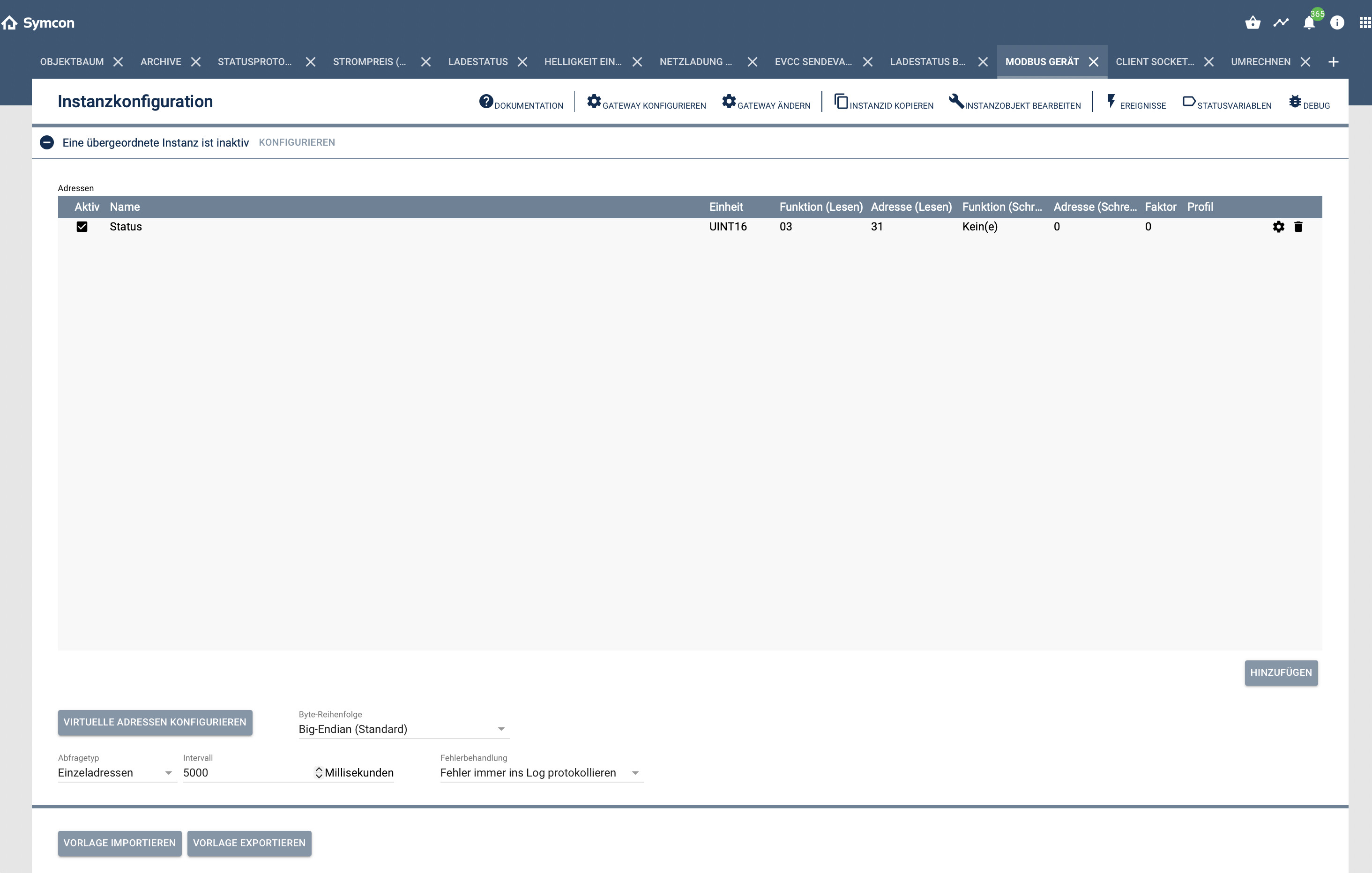 So wie @paresy es vorgeschlagen hat würde ich es auch empfehlen! EVCC hat den Modbus Proxy schon an Bord (in der Bezahlvariante), einfach dort aktivieren und Symcon auf diesen pointen…