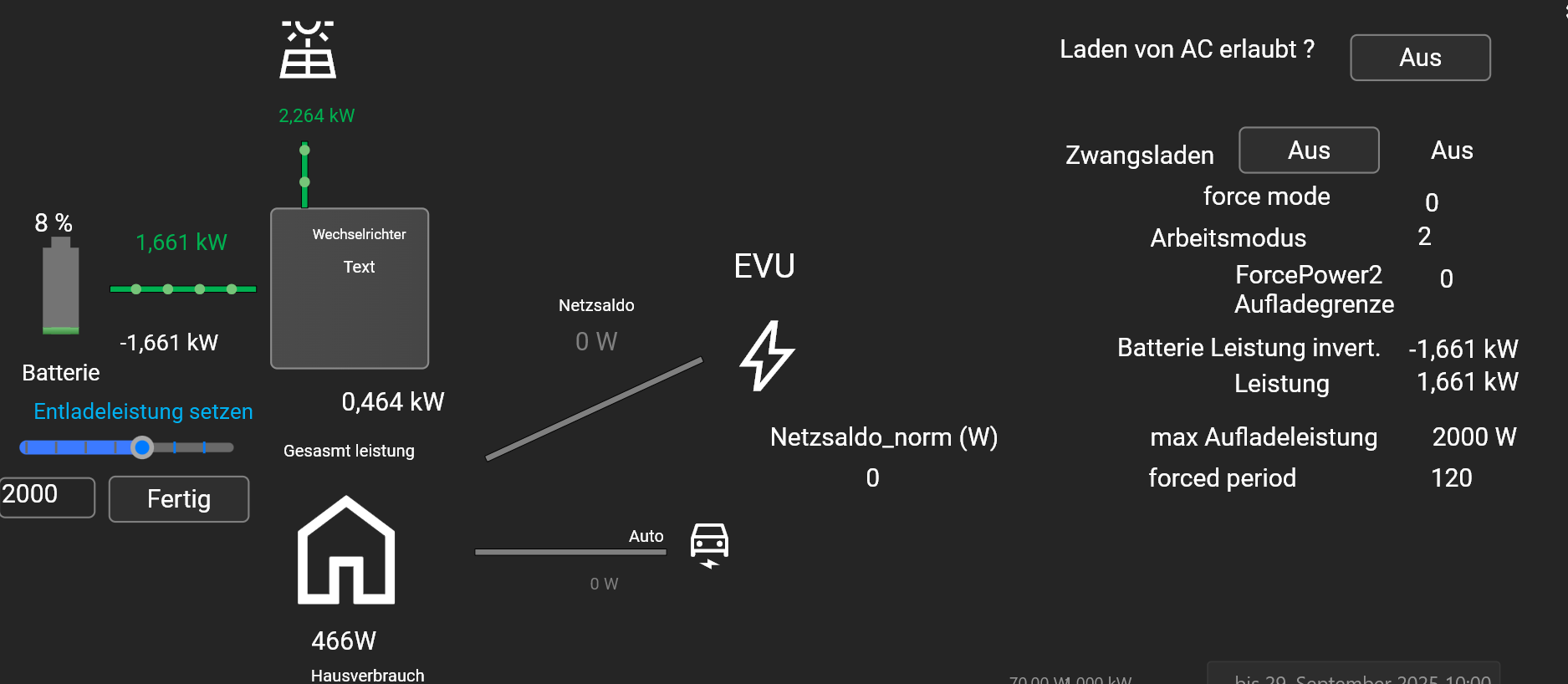 Falls wer fragt warum ich das will: Meine pv ist klein 5kwp und ist nicht in der lage immer aufzuladen. Gleichzeitig habe ich einen Awattar Stromtarif der manchmal billig manchmal extrem teuer ist. Da bietet es sich an in billigen Zeiten den akku zu laden.