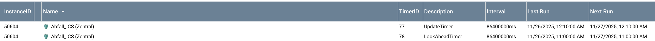 In Abfall.ICS habe ich mit der Predicted Option experimentiert, aber es scheint nichts daran zu ändern.