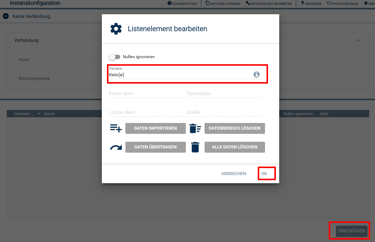 Datentransfer auf andere Variable im Konfigurationsformular hinzugefügt.