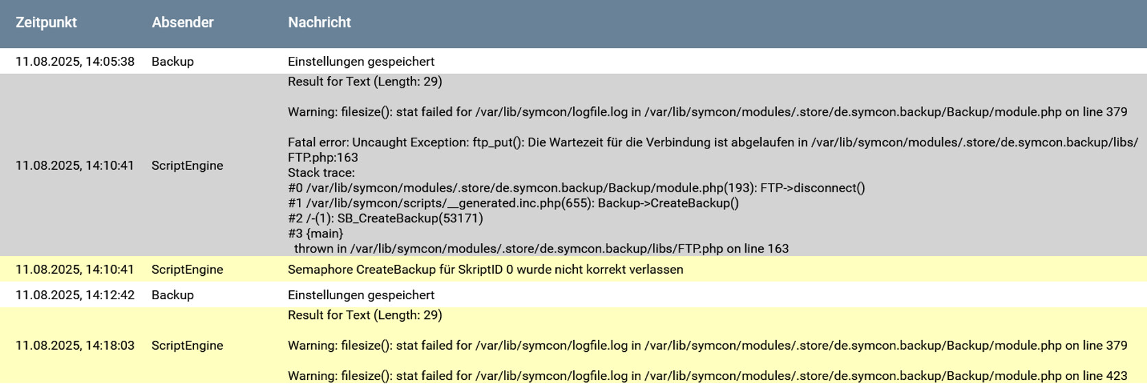 Edit: Das Backup heute morgen um 3:00 ist ohne Fehlermeldung und anscheinend korrekt durchgelaufen.