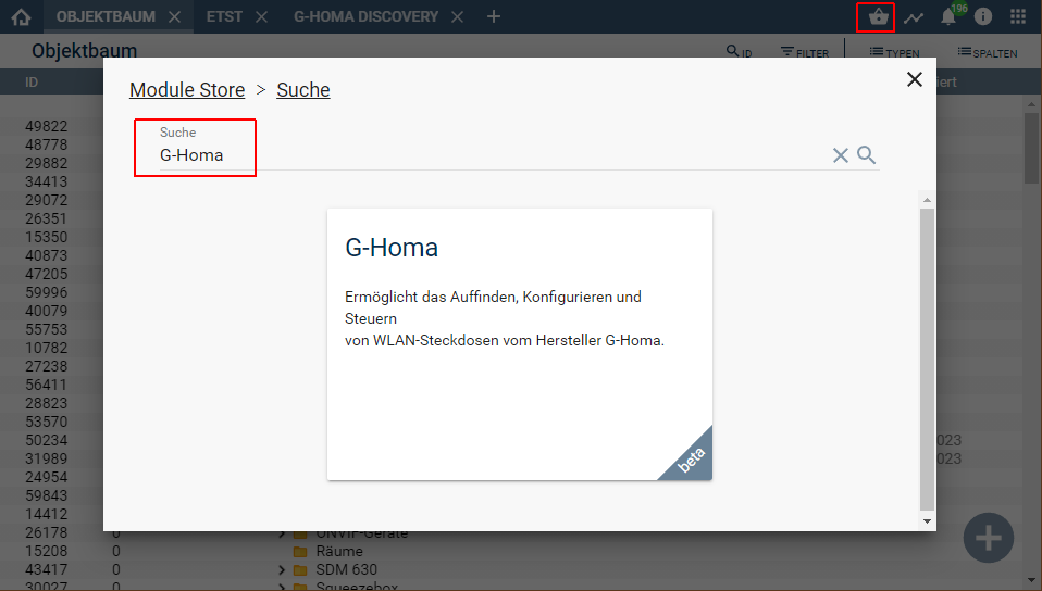 Über den ‚Module-Store‘ in Symcon das Modul ‚G-Homa‘ hinzufügen.