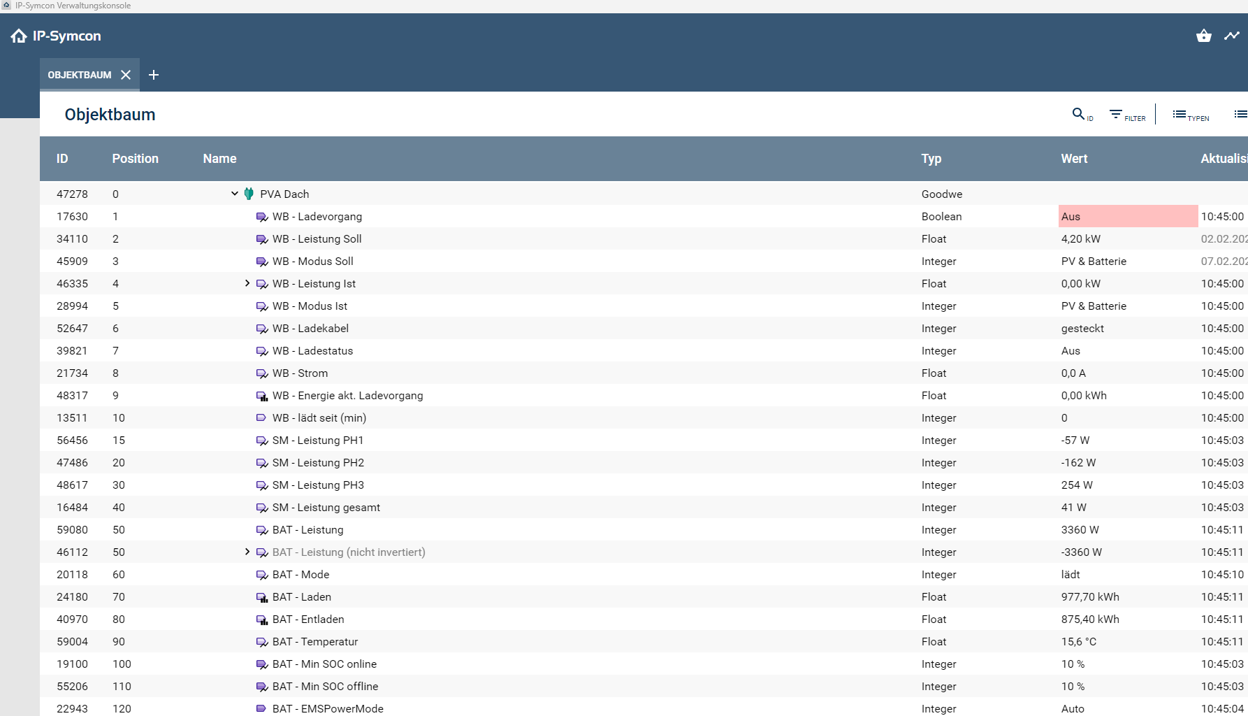 Interessant, probiere das Modul dann unbedingt mal aus. Bereits jetzt kannst du damit Einfluss auf EMS Power Mode und EMS Power Set nehmen, was eine Steuerung von Netzbezug und Abgabe möglich macht. Wie erwähnt, gebraucht habe ich es noch nicht da kein Anreiz. Aber wenn sich das dann mal ein Profi anschaut ist das sicher noch ausbaufähig.