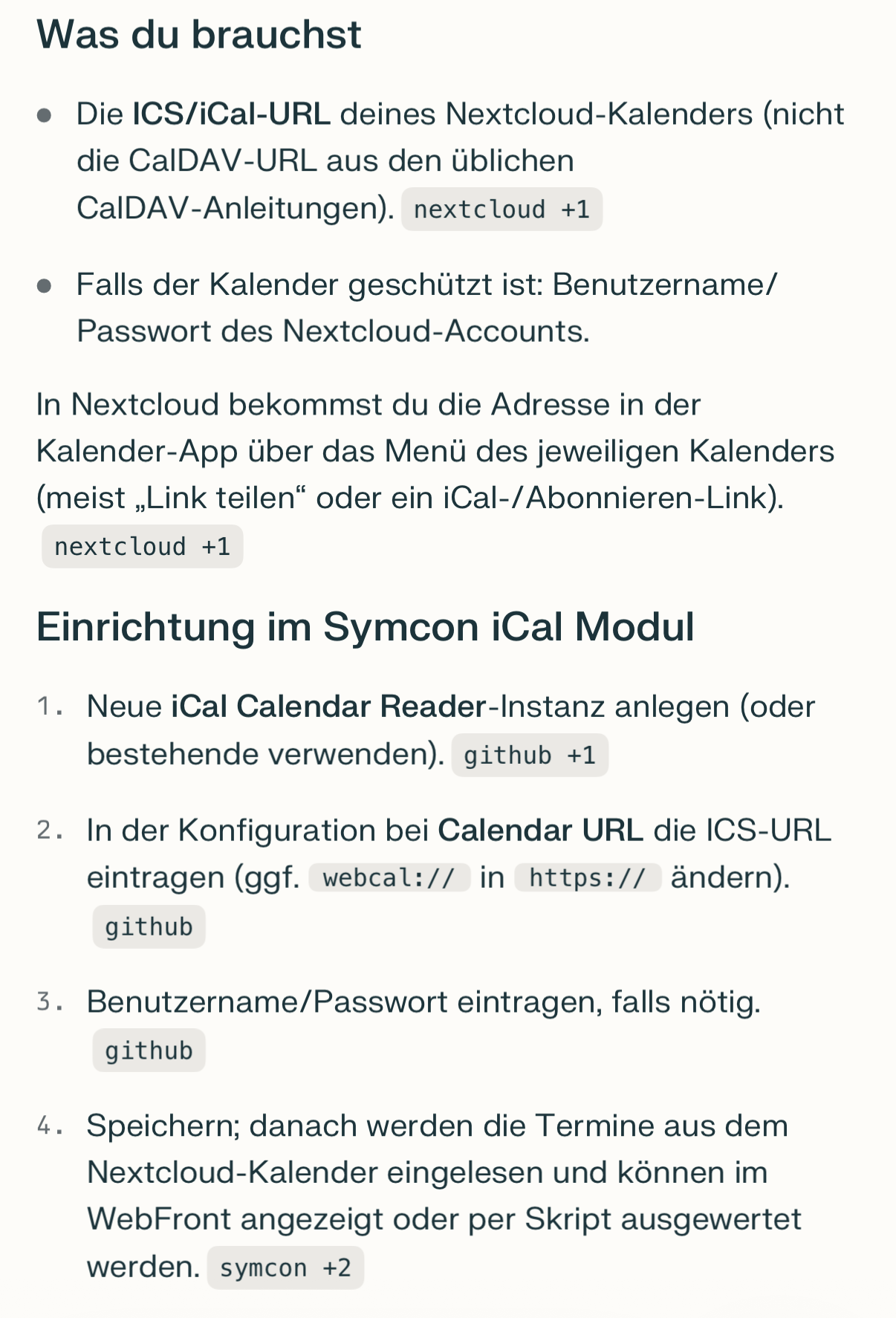 Danke dir für die Hilfe. Habe es jetzt mal hinbekommen das er die Instanz ohne Fehler meldet. Ich habe hier wie du auch geschrieben hast den Internen Link kopiert und musste auch das ?export dran hängen. Hatte ich zwar vorher schon probiert aber ohne slash. In deiner Anleitung steht „/(calendar-name)?export“. und das war vorher mein Fehler.