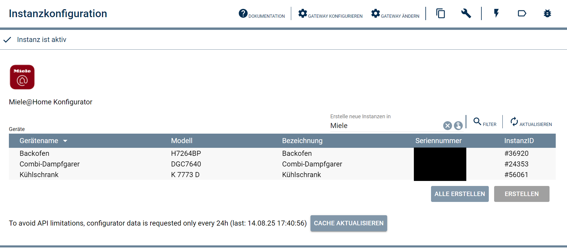Was ab und an passiert ist, das die zugehörige IO-Instanz auf Fehler läuft, weil aus ungeklärtem Grund die Instanz meint, das der AccessToken ungültig ist - dann hilft „Zugang prüfen“ wieder mittels des RefreshToken einen AccessToken zu erhalten.