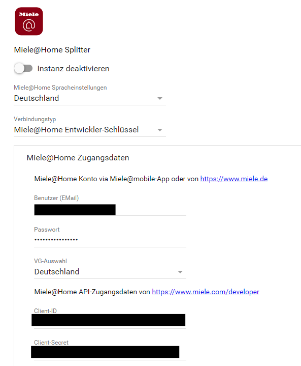 Mn muss offensichtlich eine neue Client-ID/Secret beantragen ( Get Involved ) mit seiner Mail-Adresse des gültigen Miele-Accounts und bekommt dann nach ein paar Minuten eine Mail, muss bestätigen und bekommt dann die neue Client-ID und -Secret angezeigt. Unbedingt sicher verwahren!