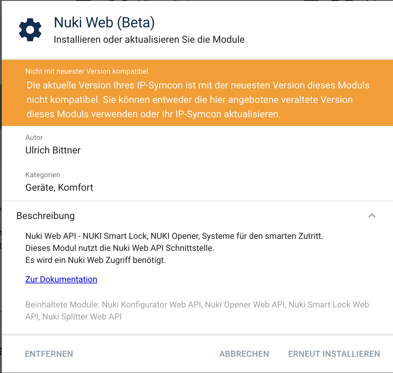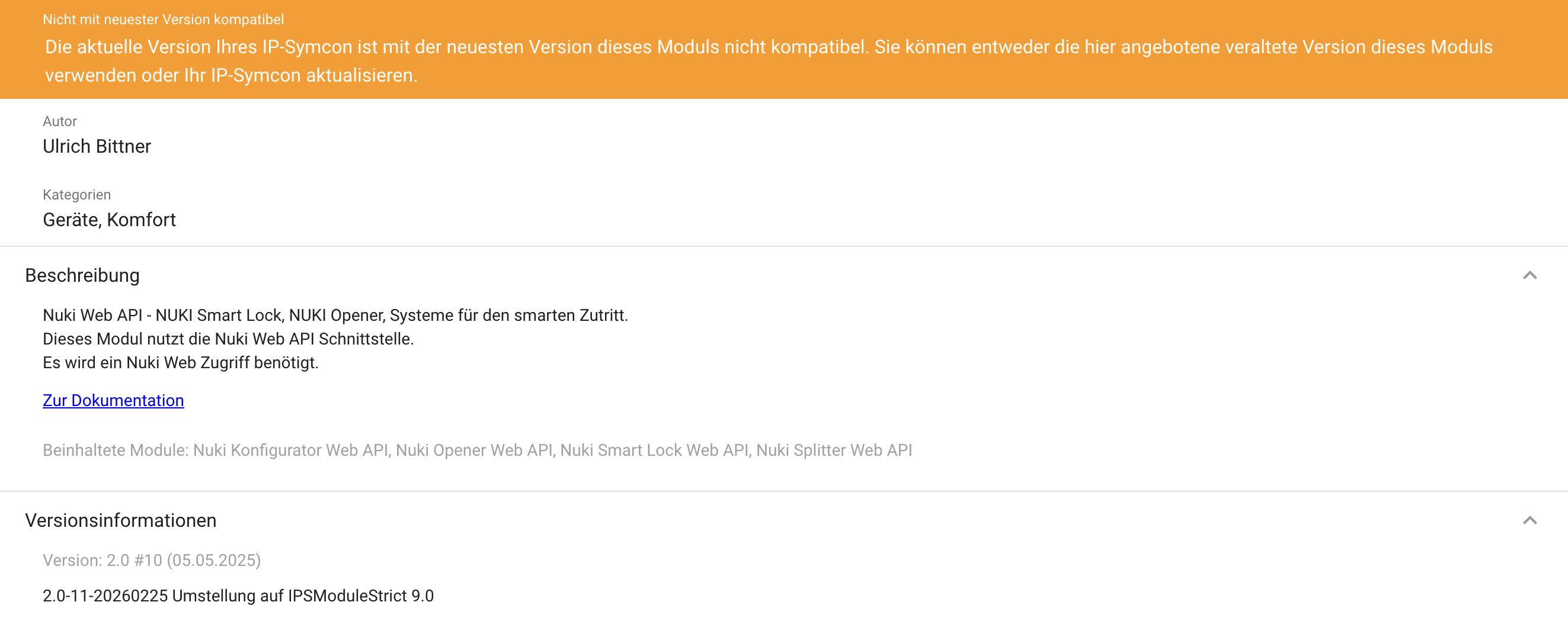 von mir wurden da keine Änderungen vorgenommen. Nicht an Symcon und nicht an NUKI. Wenn ich das Modul de/installiere und alles neu einrichte ist alles ok, sobald die erste Aktion vom Schloss kommt, fängt das Protokoll an sich in Dauerschleife zu aktualisieren.
