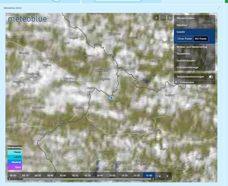 Es kann nur Niederschlag allgemein dargestellt werden, ob Regen oder Schnee…
