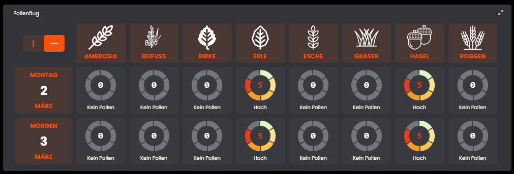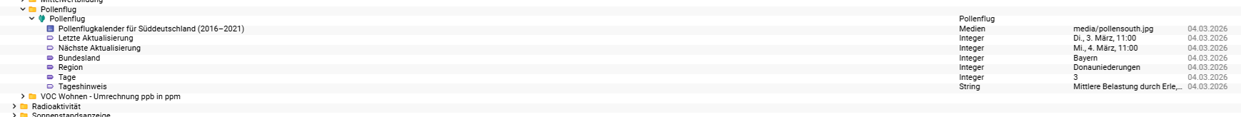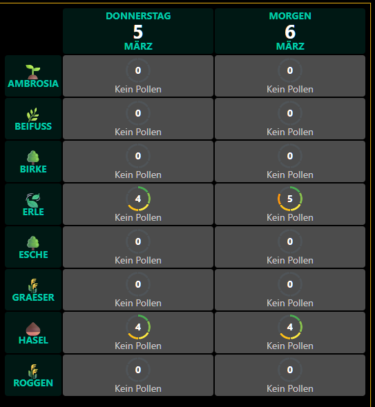 Tja, da musst Du Dich an DWD wenden, sie geben die Daten um 11 Uhr heraus und ich packe nur noch ein Puffer von 15 min drauf, so daß jeden Tag 11:15 Uhr die neuen Daten kommen. Wenn man eine Ansicht mit 2 Tagen hat sind am Morgen die daten für heute noch sichtbar
