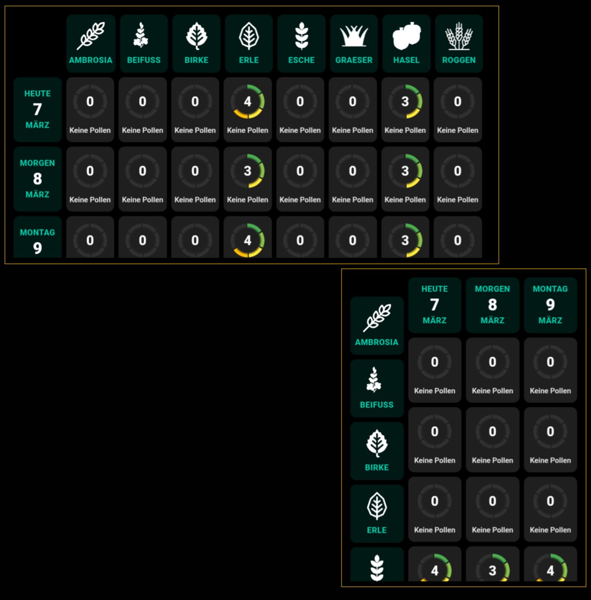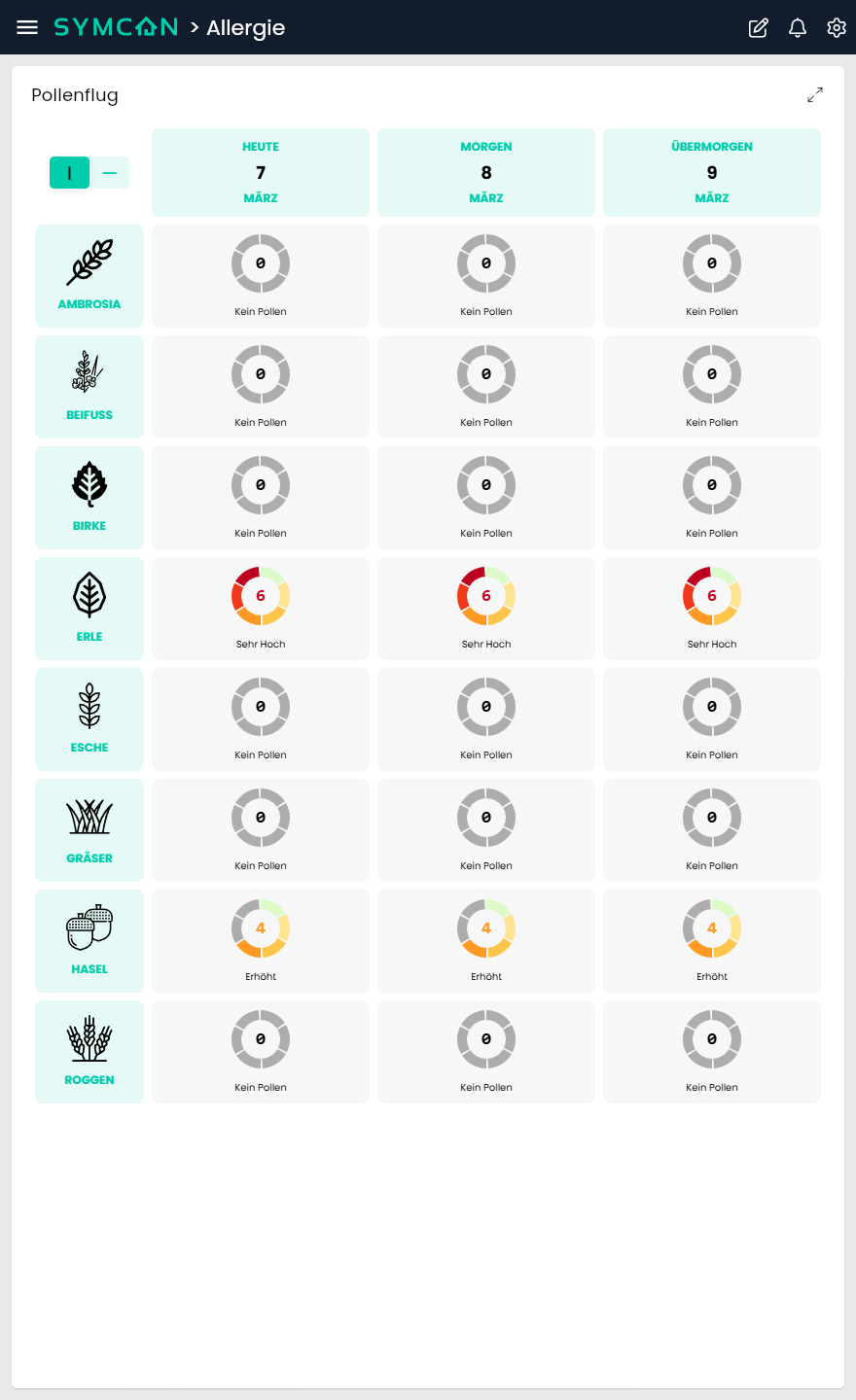 Der Pollentext passt aber irgendwie noch nicht. „Keine Pollen“ bei Pollenbelastung?
