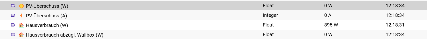 PV-Überschuss (W) (live)“ habe ich wieder ausgebaut, weil jetzt der PV-Überschuss in den Variablen