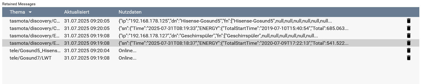 Aktuell habe ich wieder diesen Fehler, die glaube Retain Messages sind.