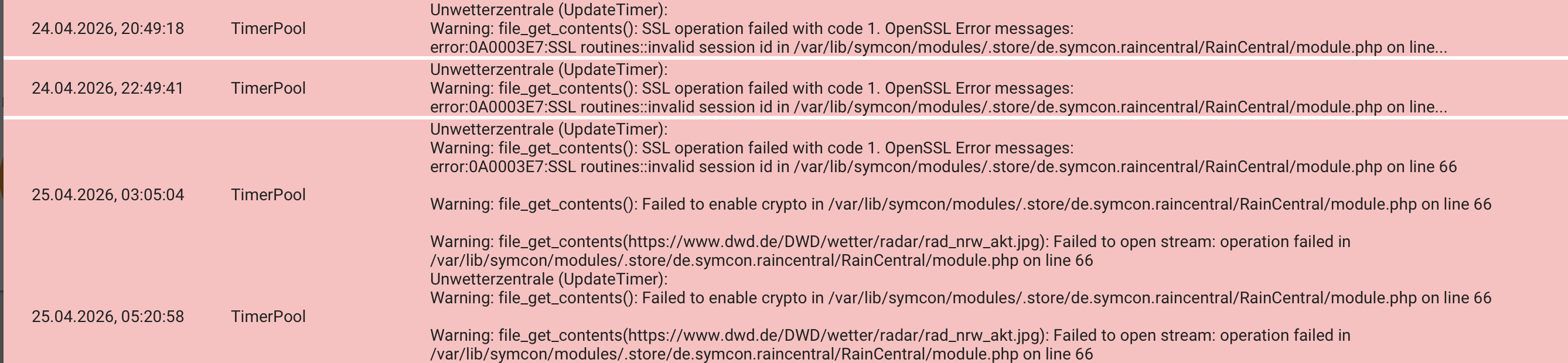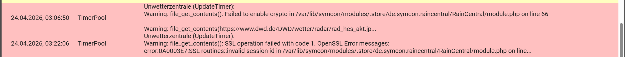 error:0A0003E7:SSL routines::invalid session id in C:\ProgramData\Symcon\modules.store\de.symcon.raincentral\RainCentral\module.php on line 66