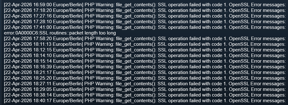 Warning: SSL connect error: TLS connect error: error:0A0003E7:SSL routines::invalid session id in /var/lib/symcon/scripts/46383.ips.php on line 74
