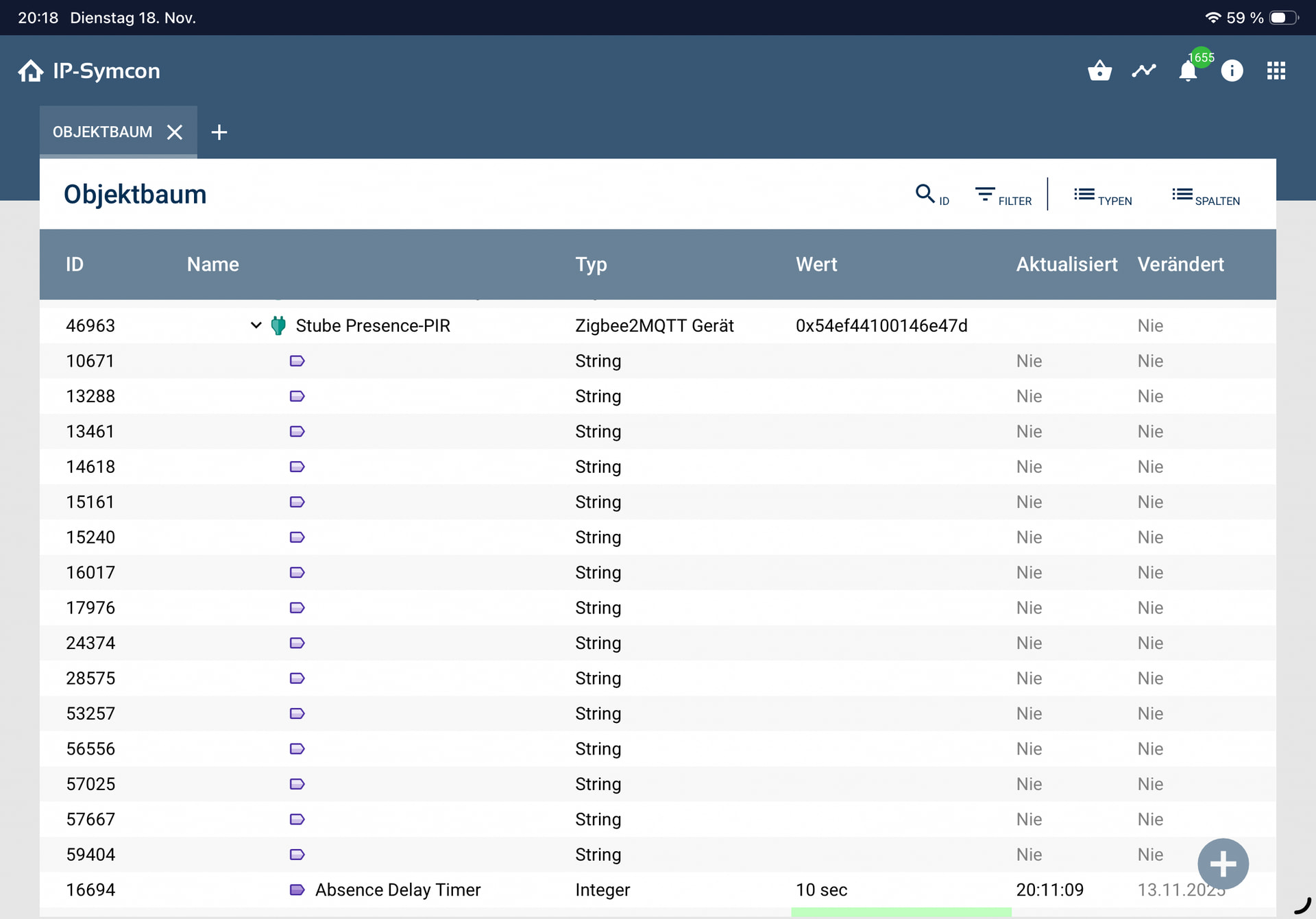 - Der Status ist schaltbar in IPS und Z2M